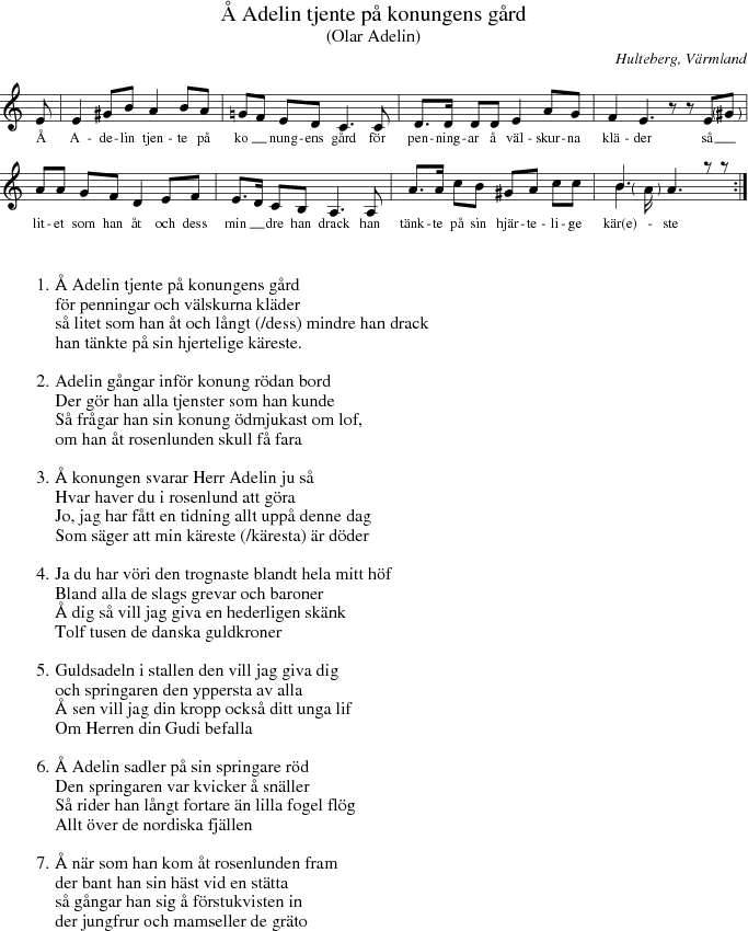 Alla verser (ifall de inte visas här ovan): 1. Å Adelin tjente på konungens gård