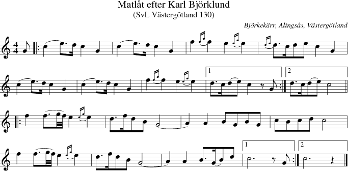 Matlåt efter Karl Björklund (SvL Västergötland 130)