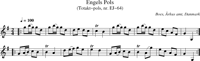 Låt nr. 3 på CD:n "Totakt-pols" av Åke Persson, Ethel Wieslander m fl. Noterna kommer från nothäftet som kan köpas med CD:n så vissa avvikelser kan förekomma. Låten har där beteckningen EJ-64.