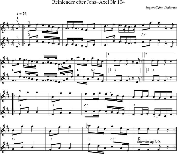 "Fr. notbok eft. Jons-Axel Eriksson, Ingevallsbo. 104. Reinlender"