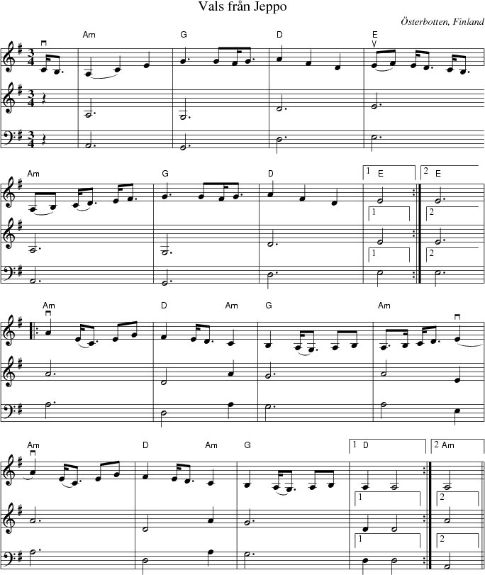 Valsen kallas allmänt "Ängen var grön". Det finns fler låtar från